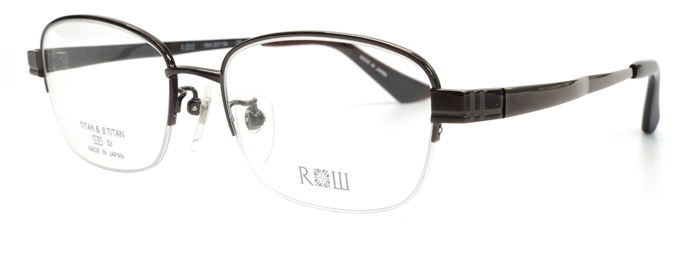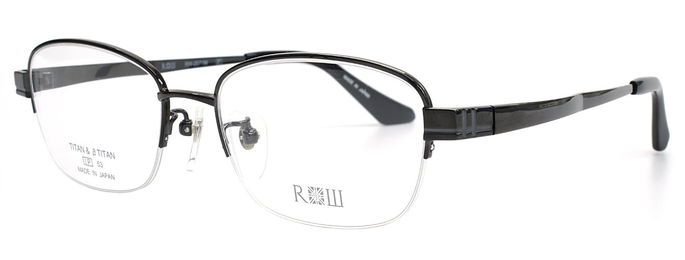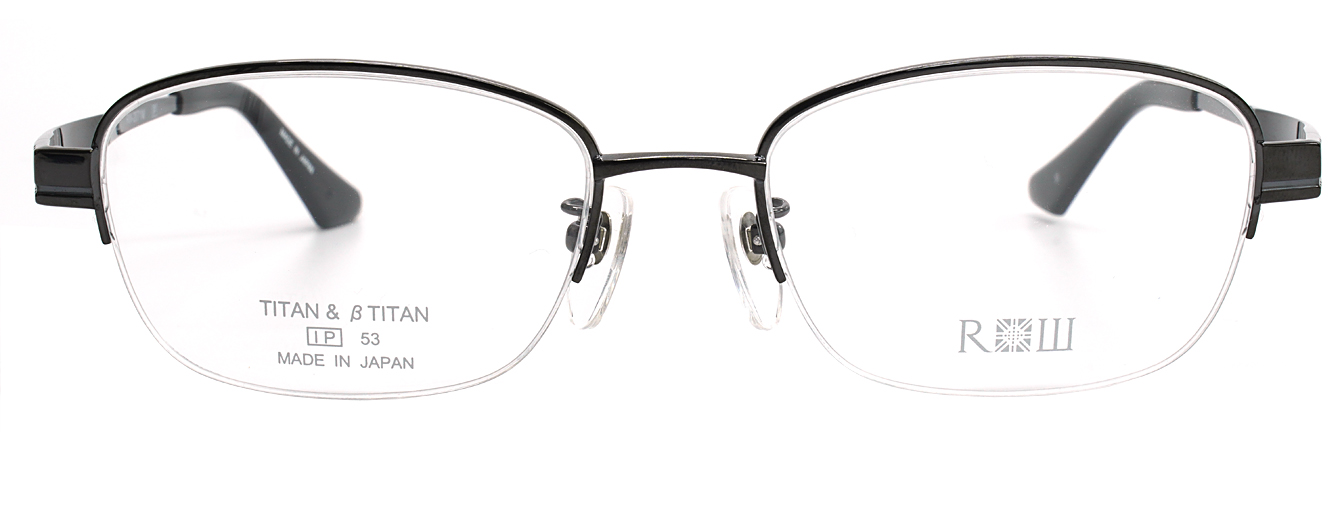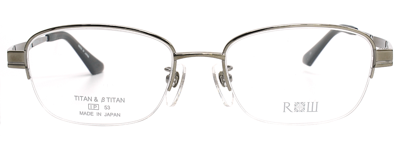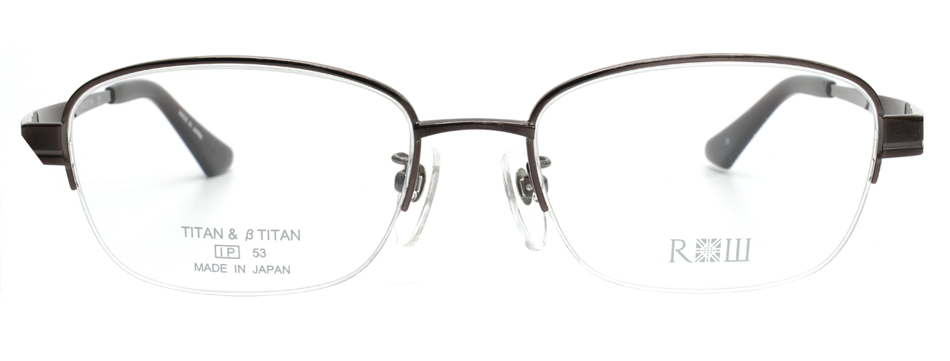テンプルβチタン、フロントチタン、IPメッキのMADE IN JAPANのフレーム。フロントは優しい印象のナイロール。テンプルは抱き込み形状で、βチタンのしなやかな掛け心地をより引き出したデザインです。