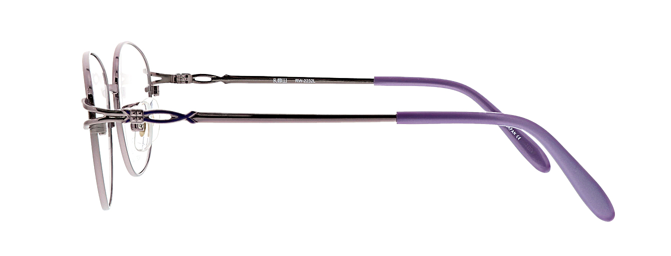 たっぷりと天地幅をとった、シニア世代に人気の定番デザインです。MADE IN JAPANのオールチタン製でテンプルには七宝で彩りをプラスしています。