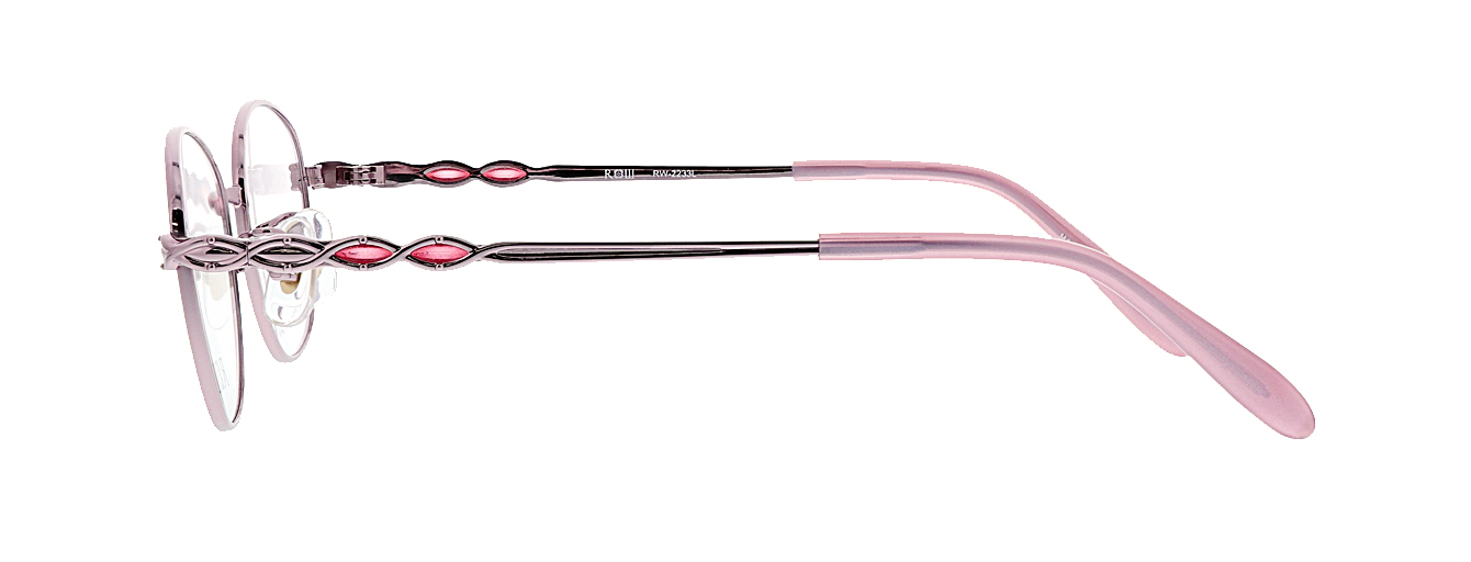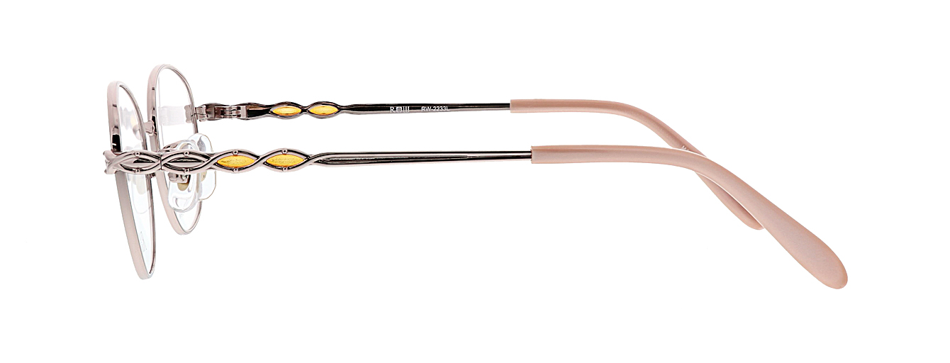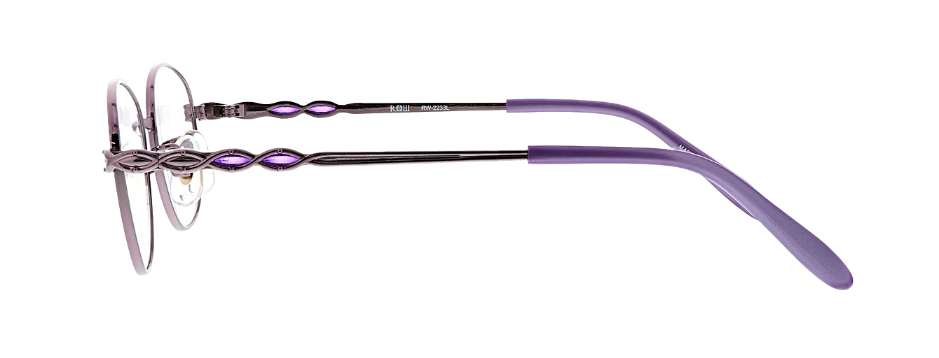 小ぶりな玉型ながらたっぷりと天地幅をとった、遠近両用にも使いやすいデザインです。MADE IN JAPANのオールチタン製でテンプルにはステンドで彩りをプラスしています。