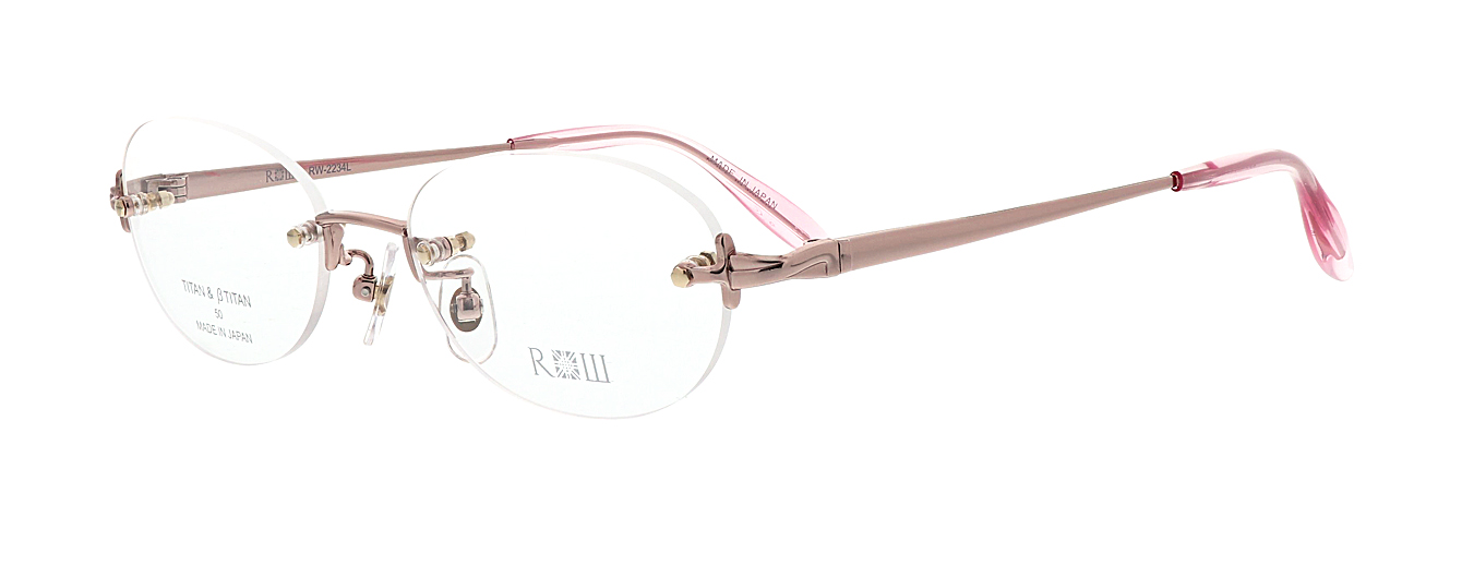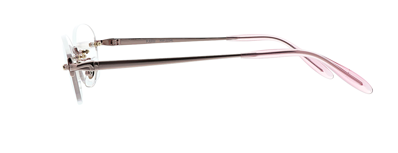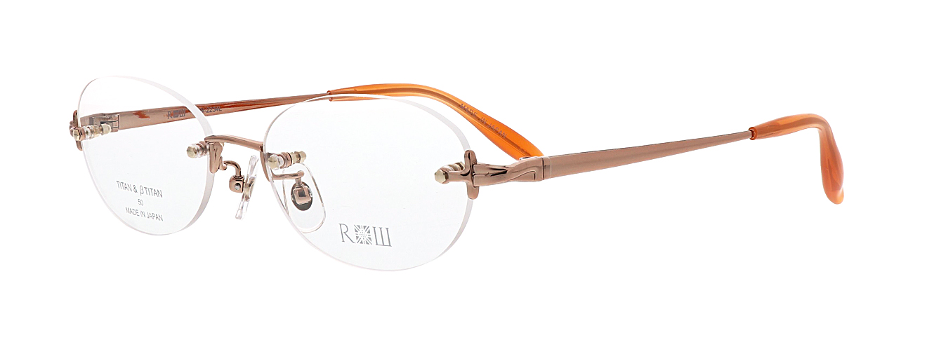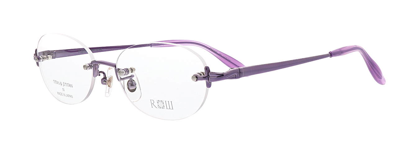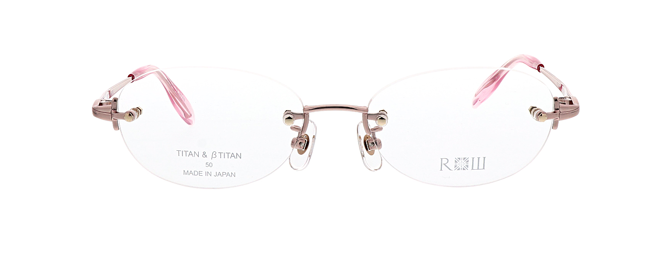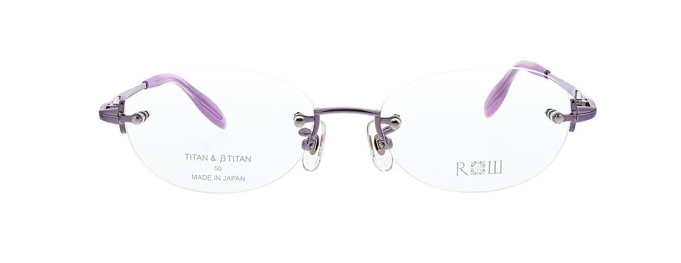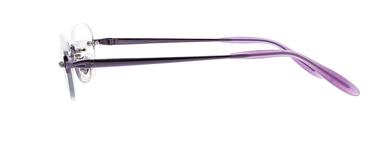お顔の印象を変えないふち無しフレーム。フロントパーツはチタン、テンプルは弾力性のあるβチタン製なので、掛け外しの際のテンションを逃し、レンズへの負荷を軽減してくれます。