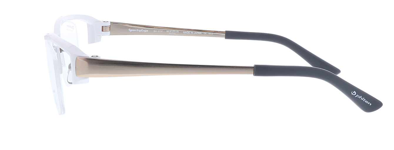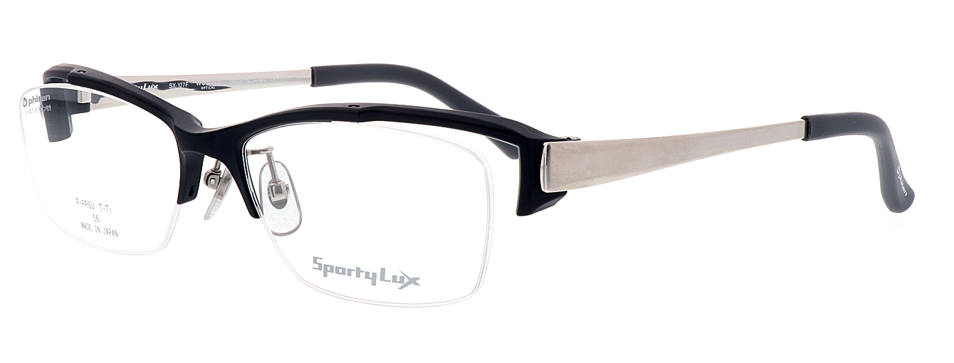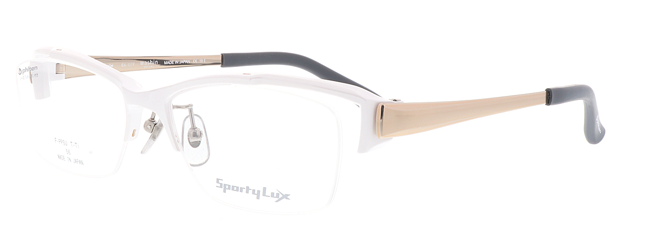 シリーズ初の「フロント:超高機能樹脂×テンプル:チタン」モデルとなります。テンプルにチタンを採用し、デザイン性と機能性を兼ね備えたフレームとなっております。テンプルには、シャーリング加工を施し高級感をプラスしたデザインとなります。モダンと鼻パッドに「ミクロチタンボール」を配合したファイテン仕様となっており、最高のパフォーマンスを引き出します。