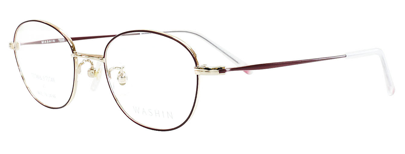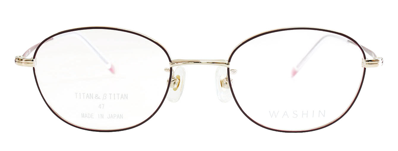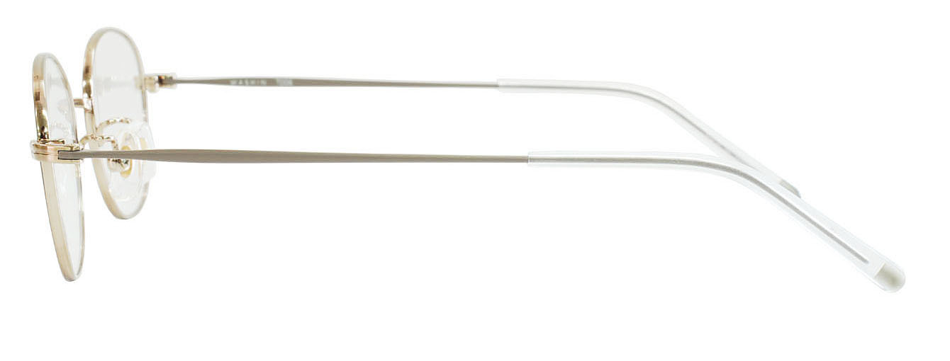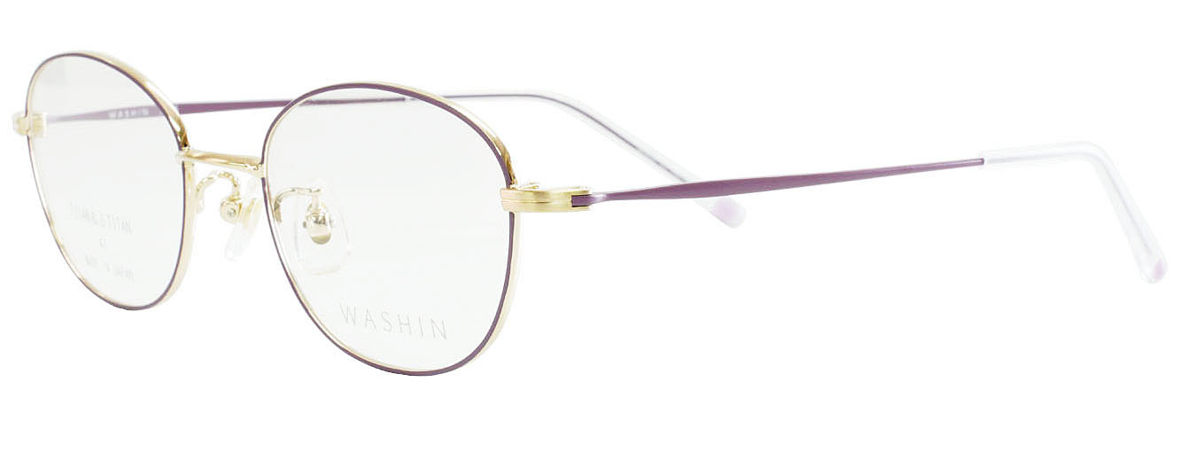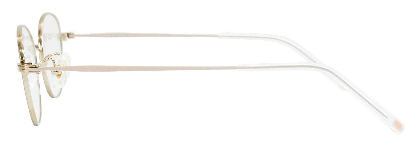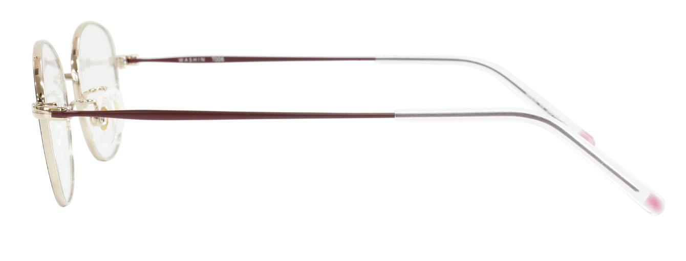 繊細なラインがミニマルで美しく、リムとテンプルのマット調のニュアンスカラーがかわいらしくおしゃれな味付けをプラスしています。玉型は丸みのあるウェリントン型で、大人っぽい可愛らしさが感じられます。