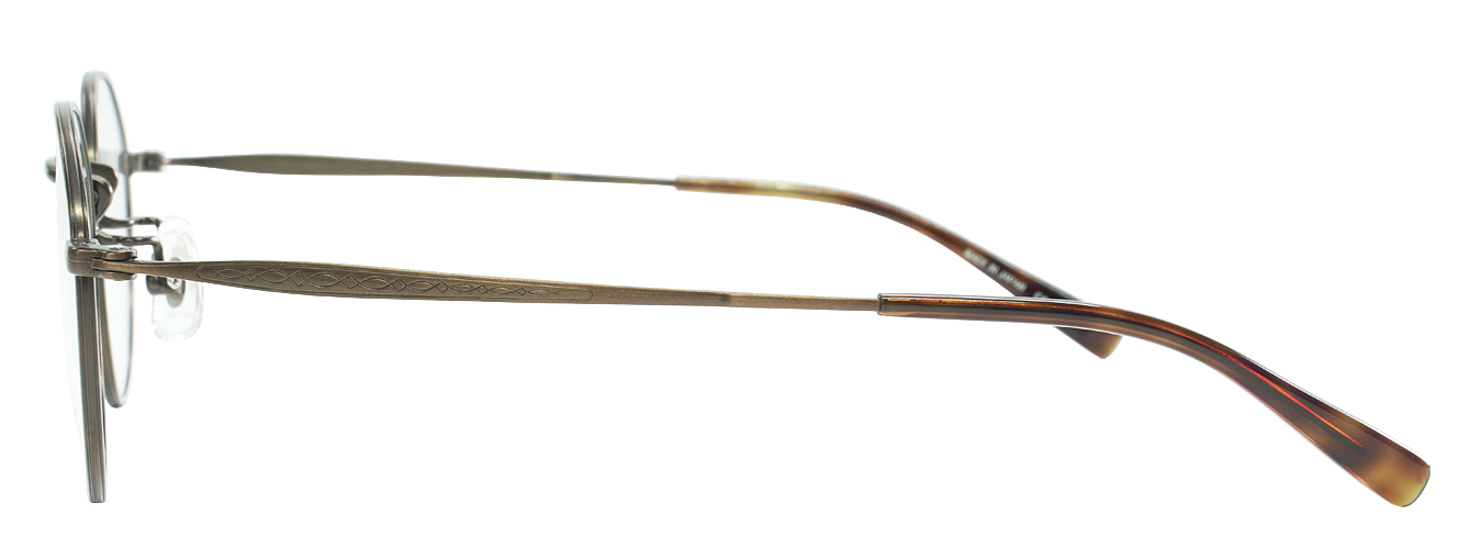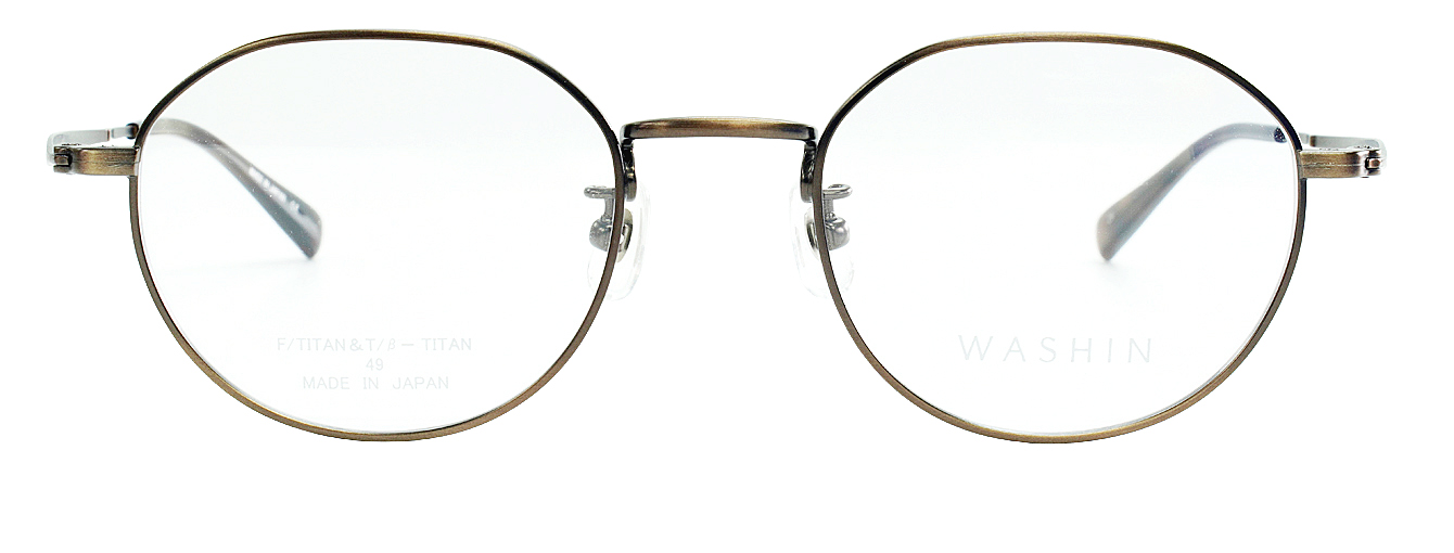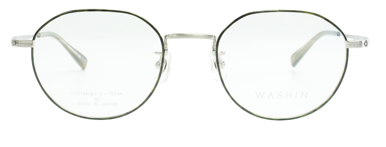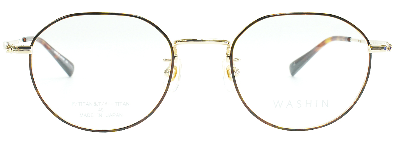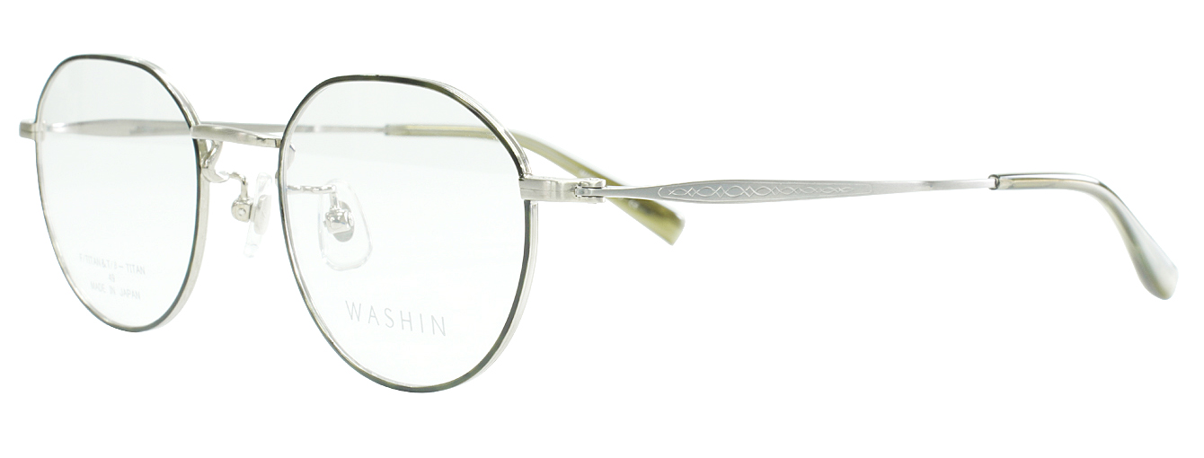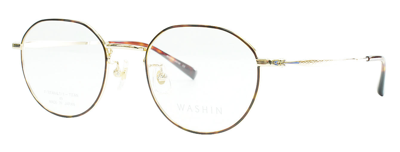 WASHIN Tシリーズ第3弾はユニセックスのクラシカルモデル。玉型はクラウンパウント、テンプルに彫り細工模様を施し、ヨロイは割智を採用。1カラー、3カラーはフロント転写となります。