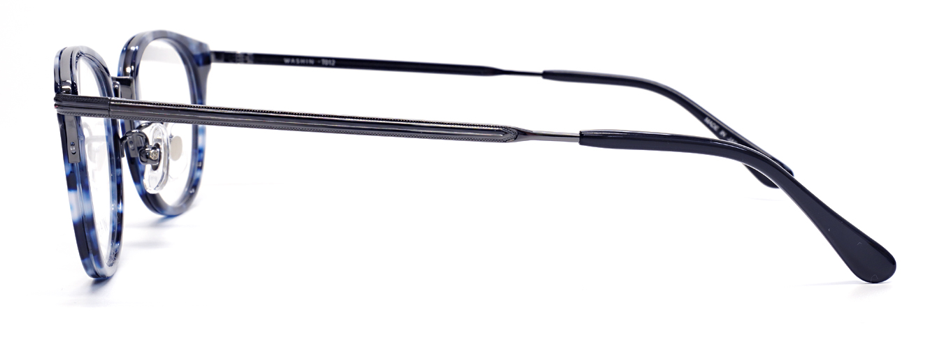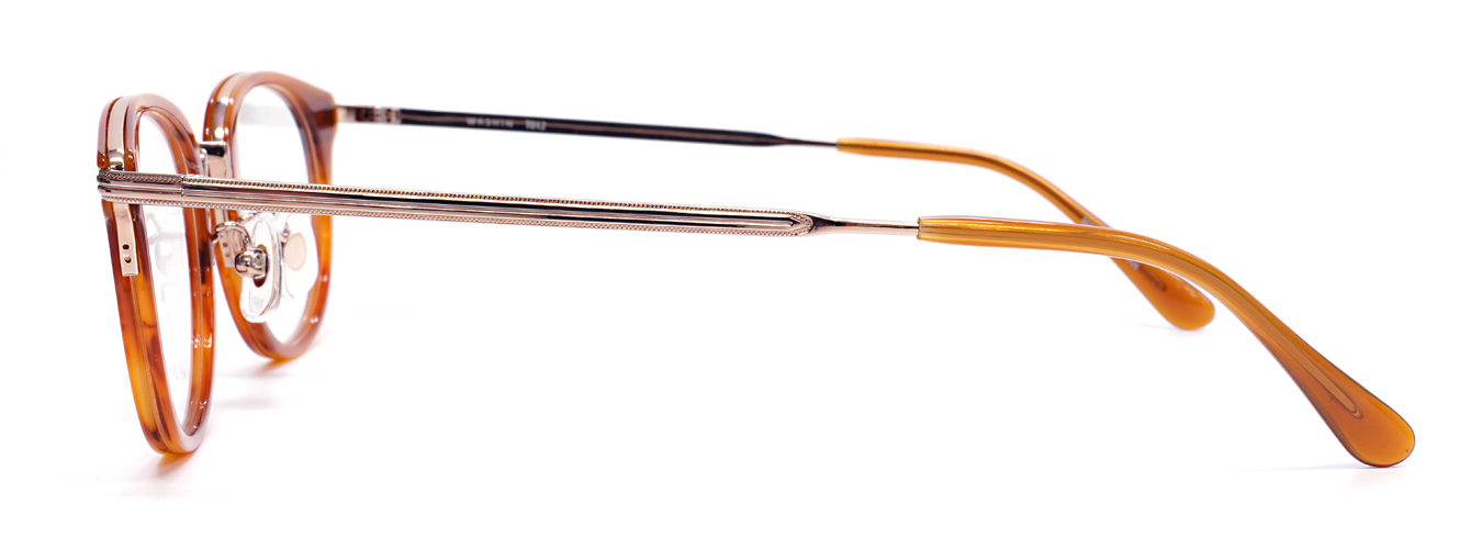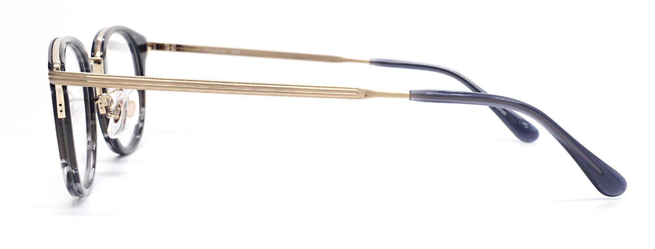 チタンとアセテート素材のクラシックなコンビフレームです。フロントのプラスチックパーツがお顔の印象を立体的に見せつつ、ブリッジのメタルパーツが程良い「抜け感」を演出してくれます。ビジネスやカジュアルなスタイルにもフィットする振り幅の広さが魅力のフレームです。