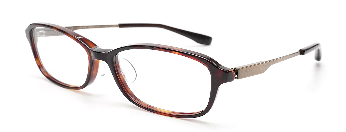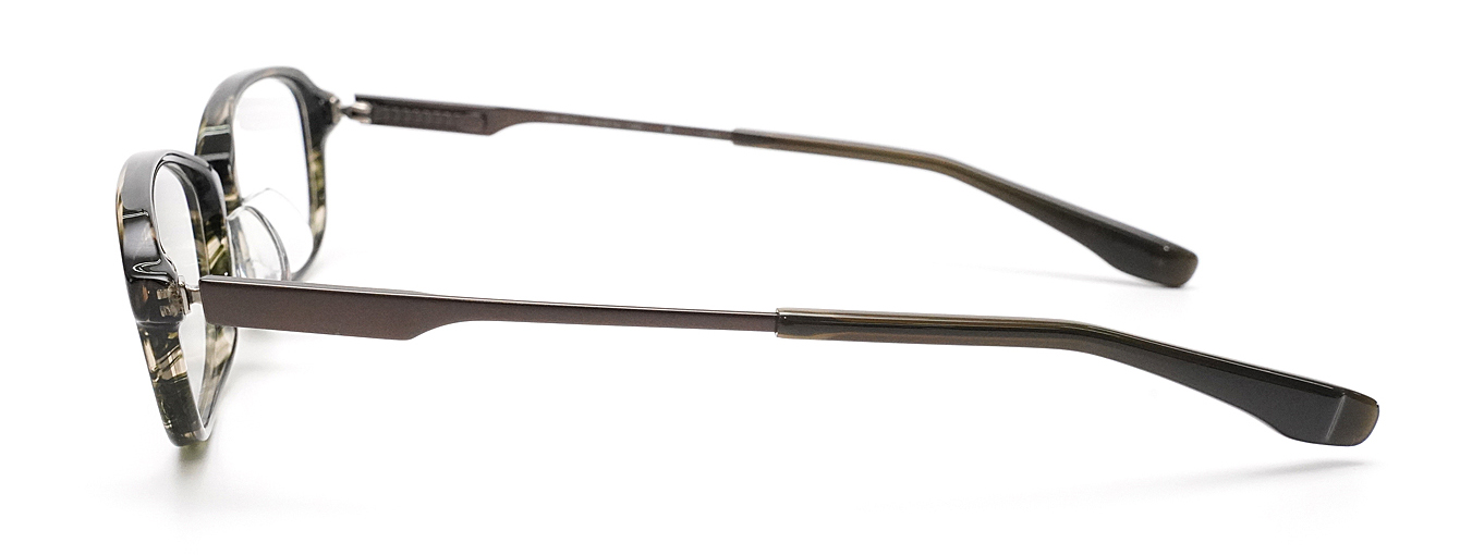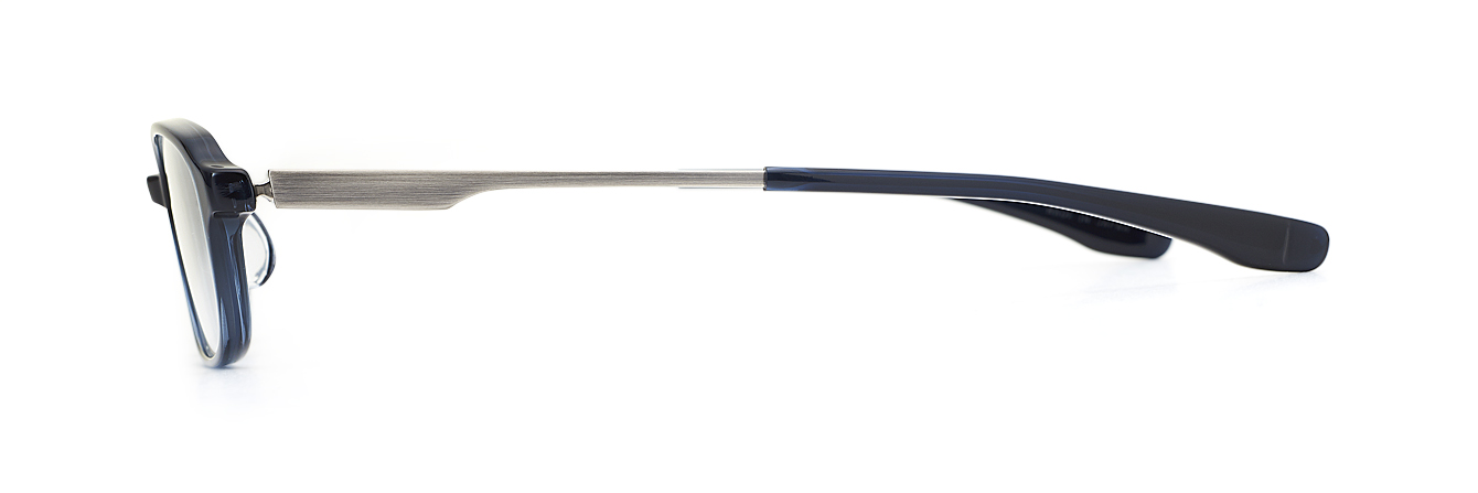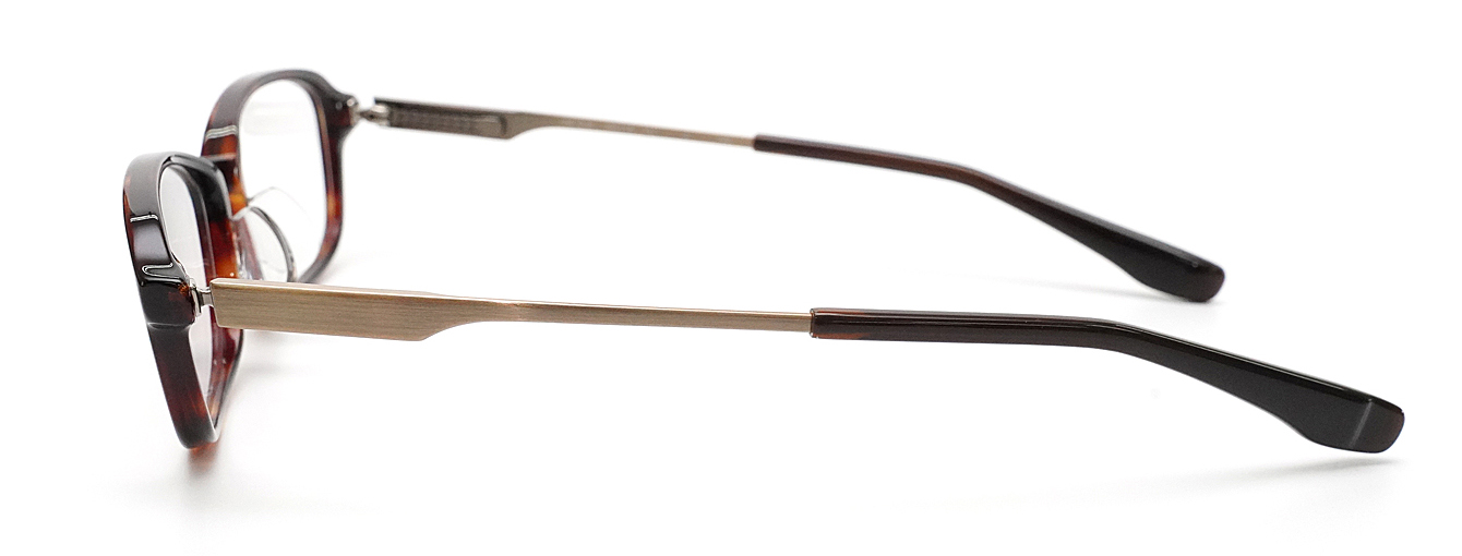 スタンダードなスクエアスタイルのフロントに、質感を際立たせるソリッドなメタルテンプルを採用しています。