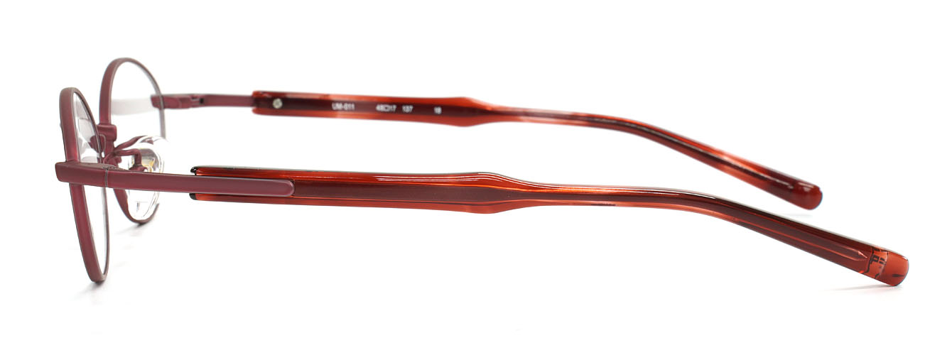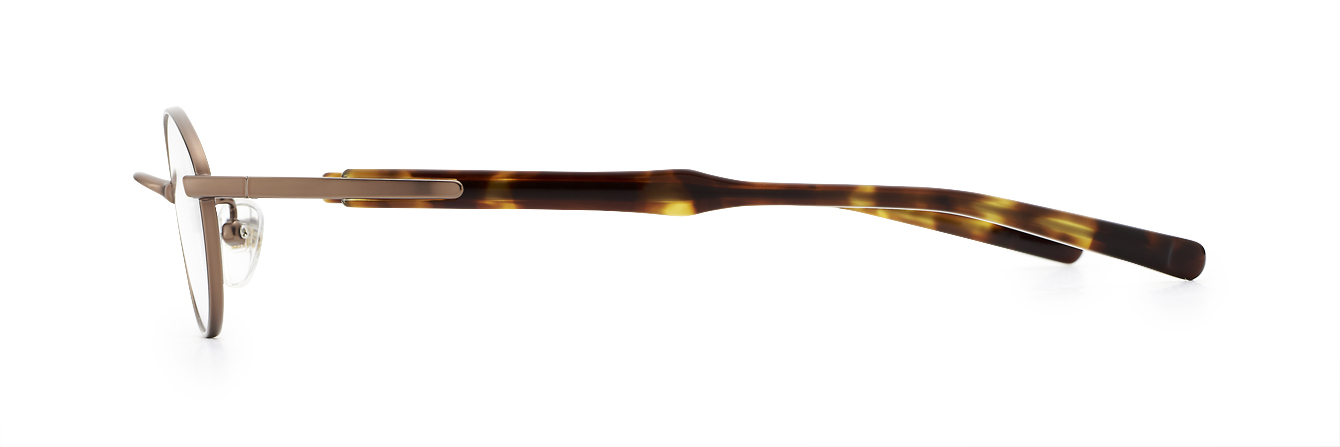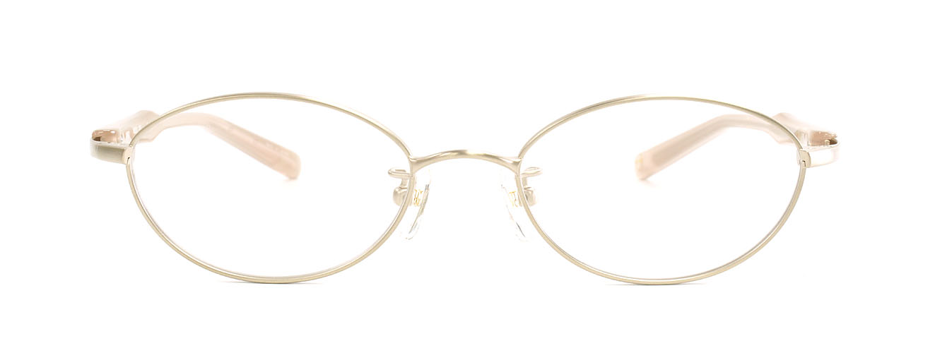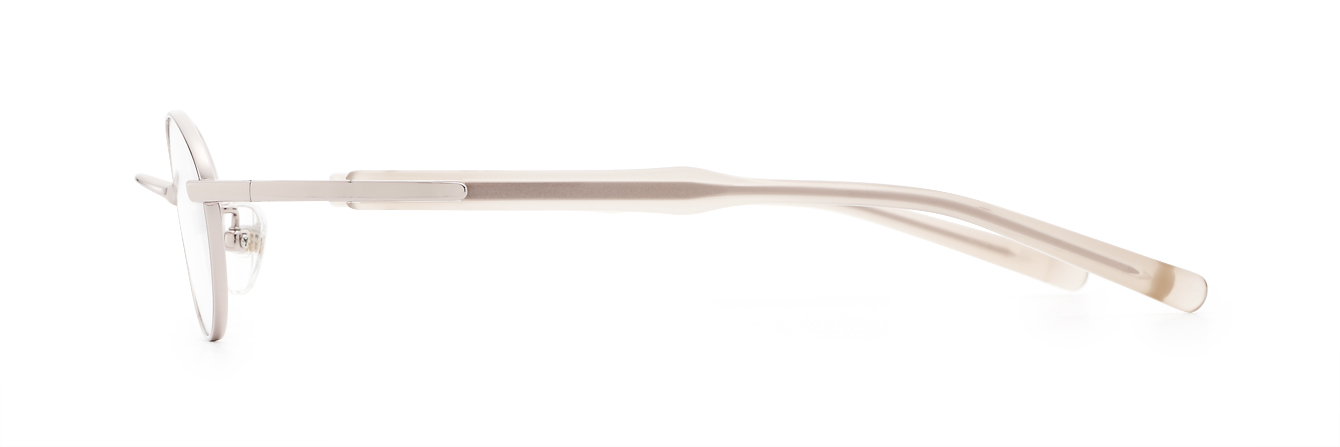 柔らかな印象を作るベーシックなオーバルスタイルのメタルフロントにプラスチックテンプルを合わせることで表現出来る、質感高いコンビネーションスタイルで、女性が身につける中でのナチュラルな美しさを演出しています。