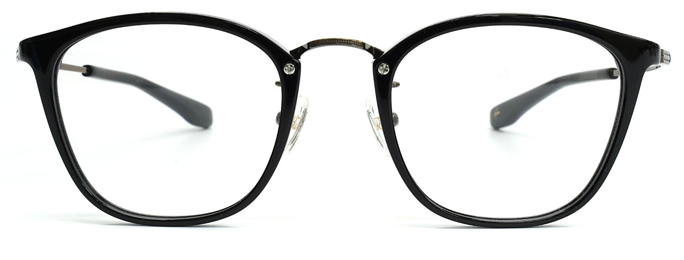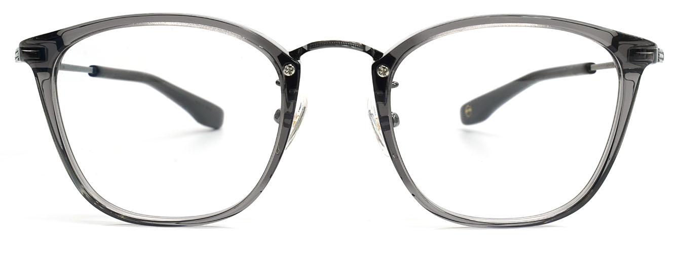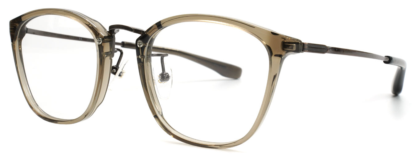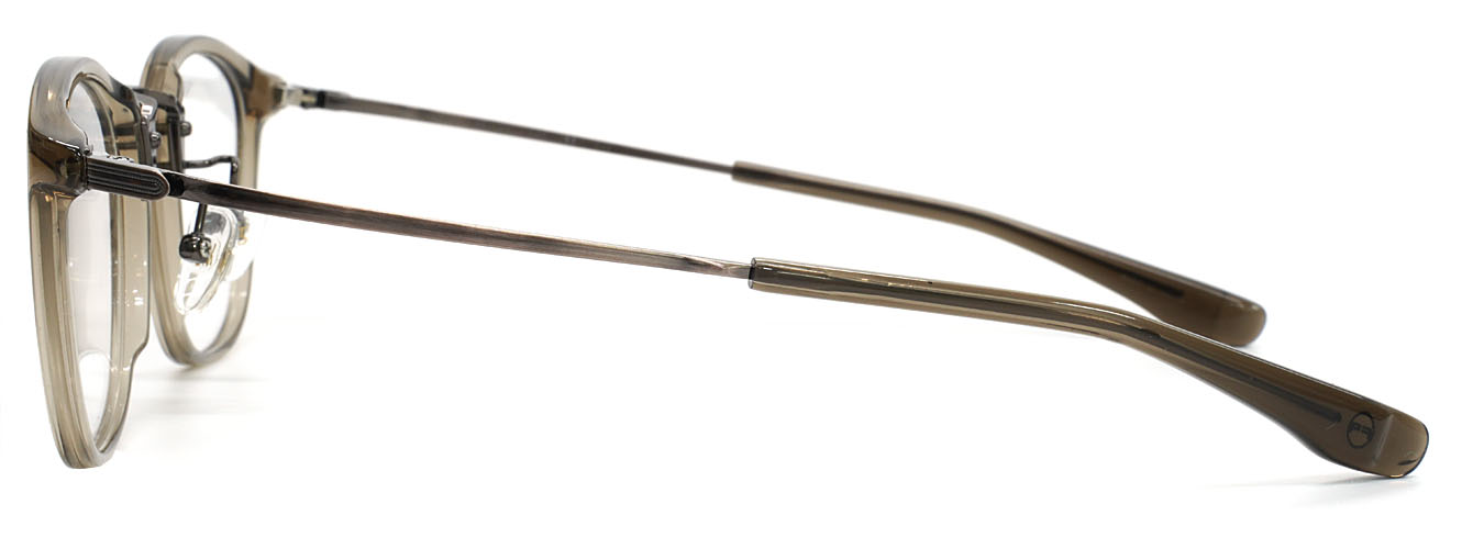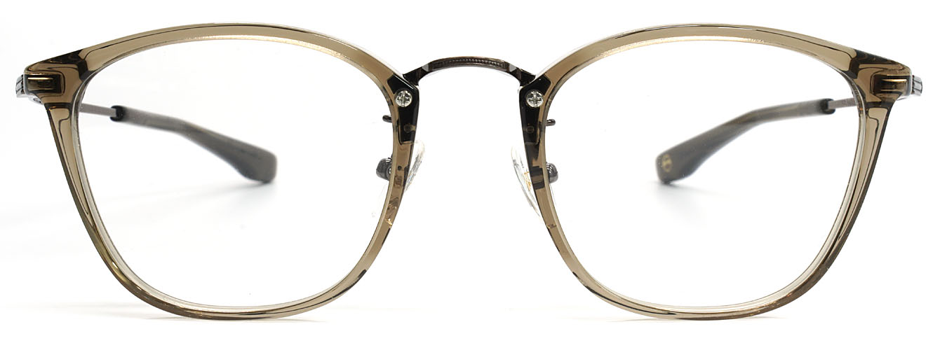プラスチックリムの柔らかな表情と、メタルブリッジの洗練された印象が、互いの質感を引き立て合うミックスフレームです。