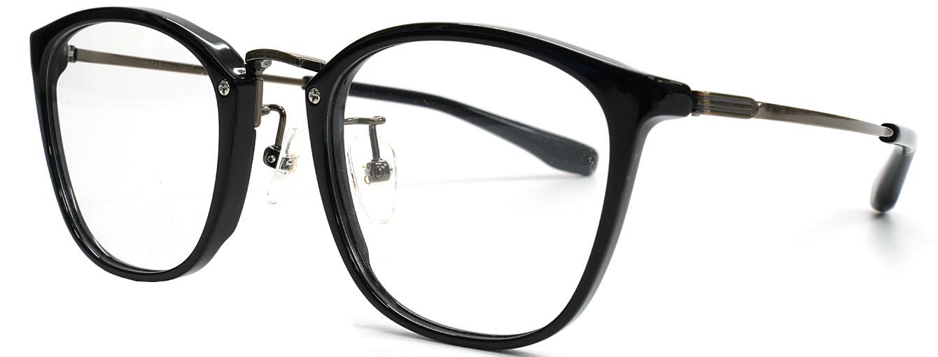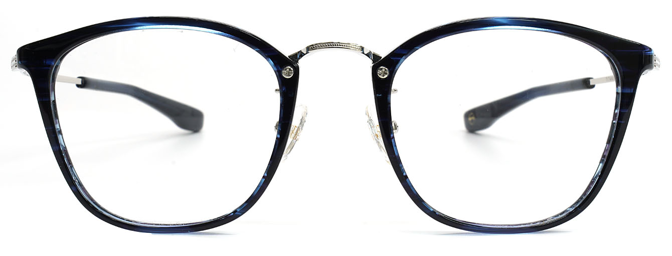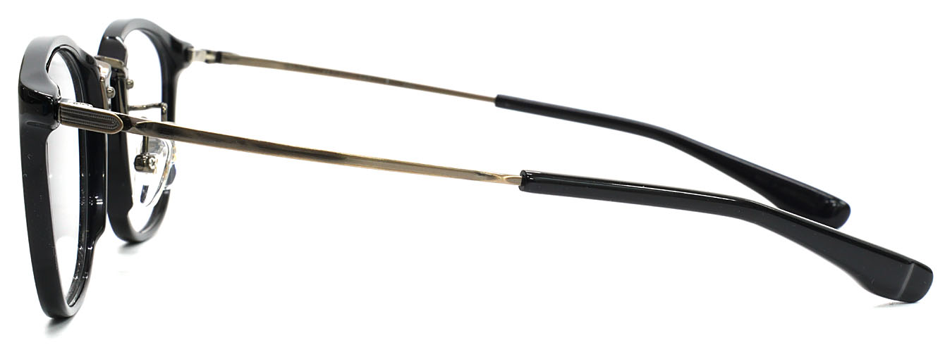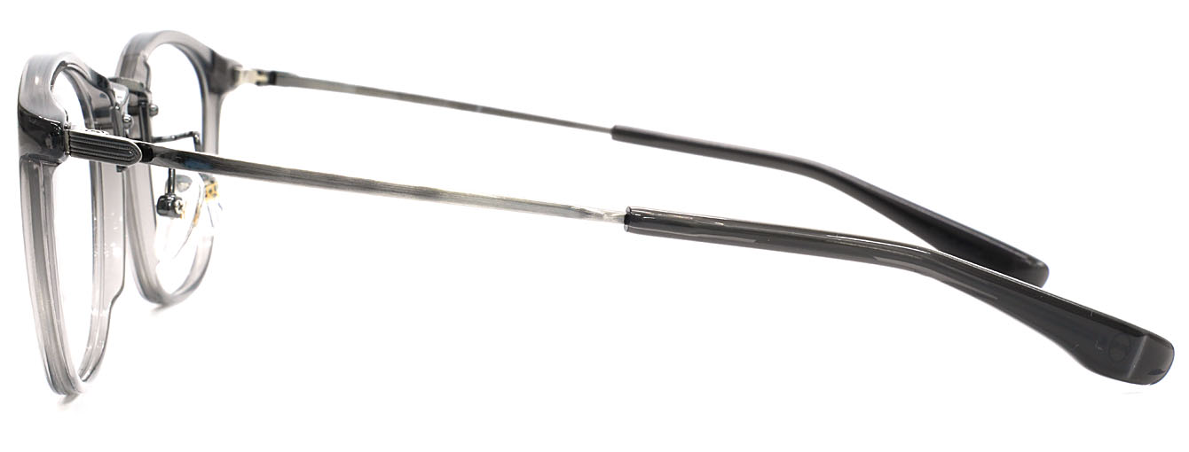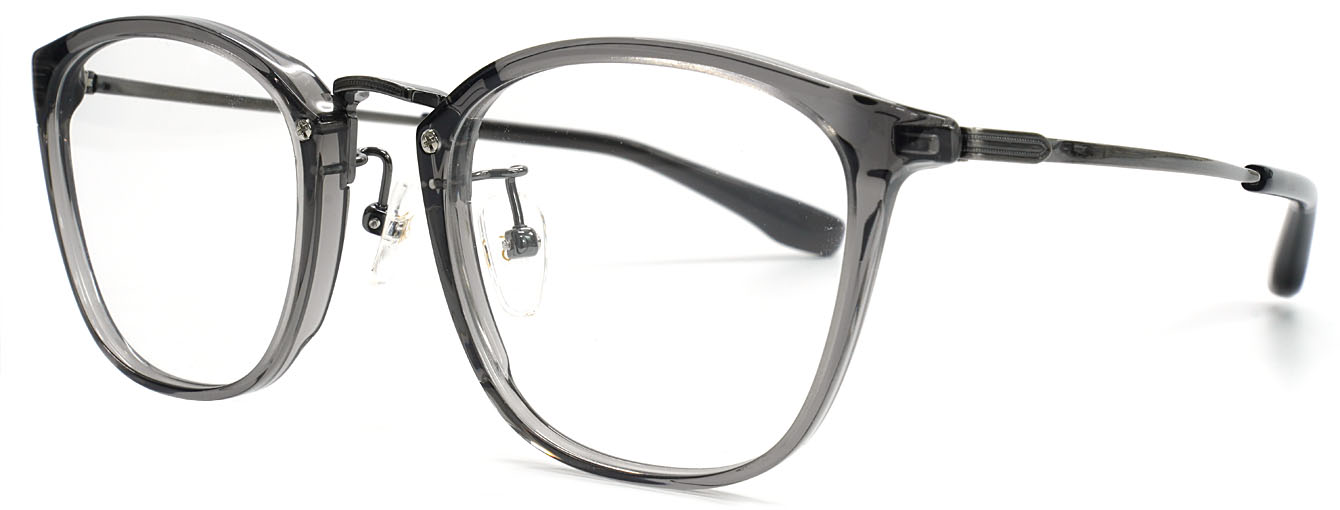 プラスチックリムの柔らかな表情と、メタルブリッジの洗練された印象が、互いの質感を引き立て合うミックスフレームです。