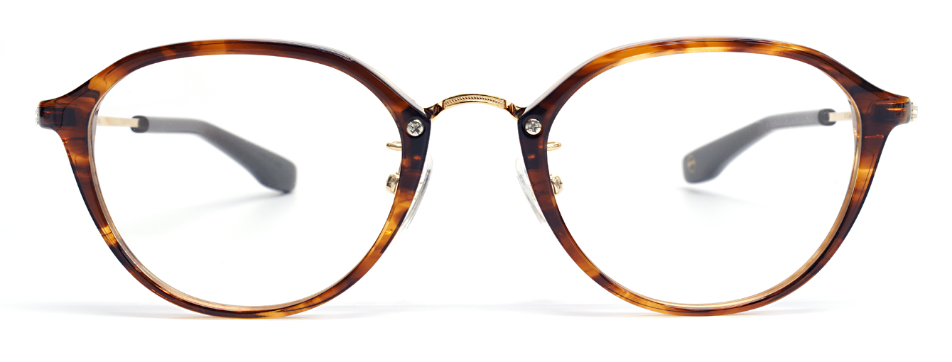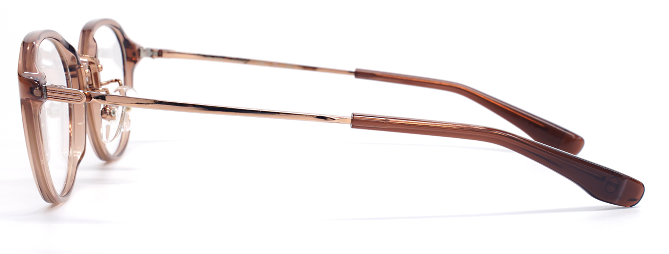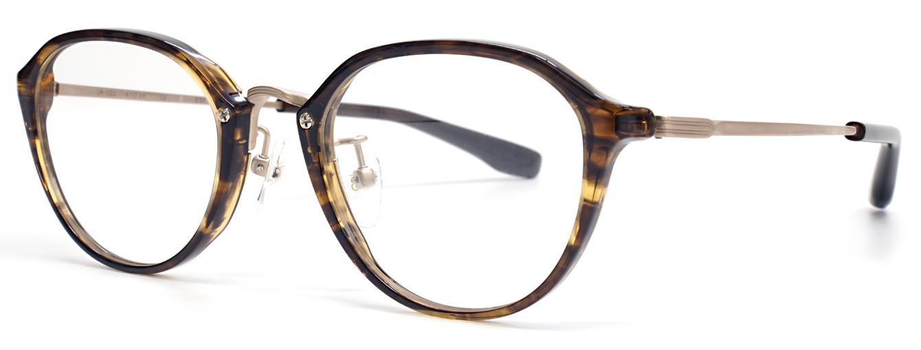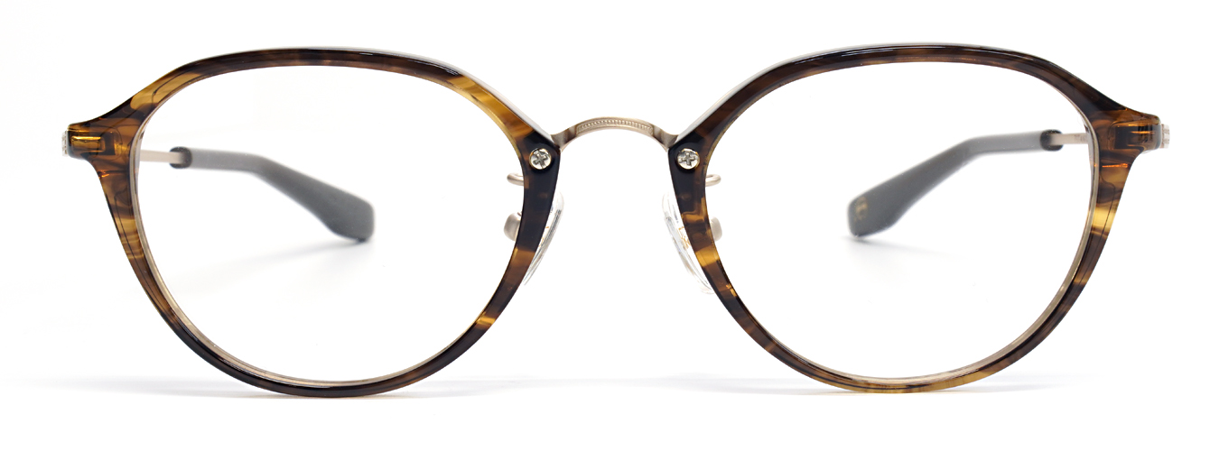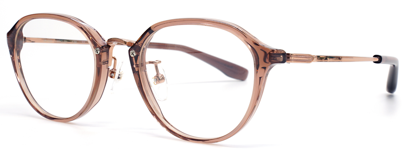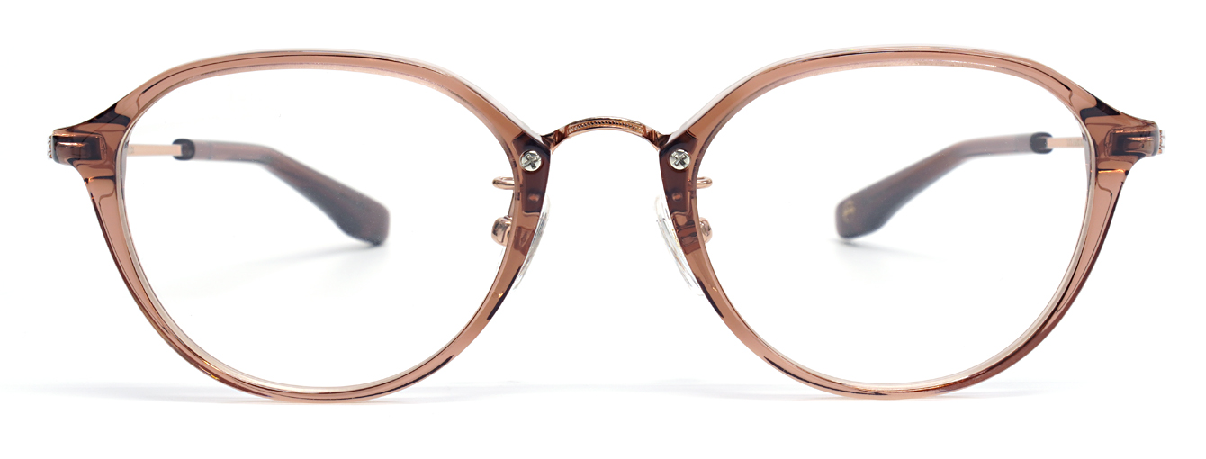 柔らかい印象のクラウンパントスタイルのミックスフレームです。年齢を問わず、より多くの人のお顔に馴染むスタイルです。