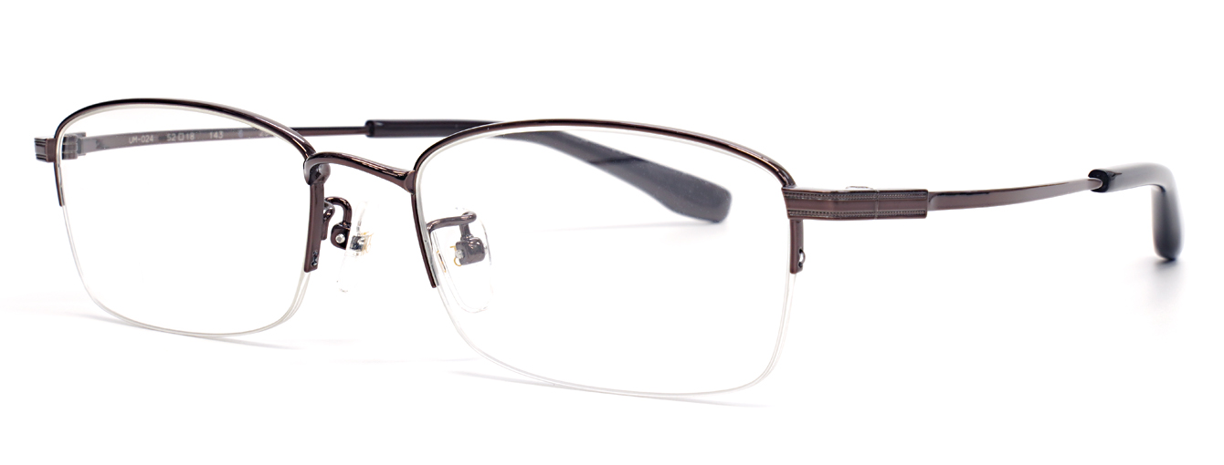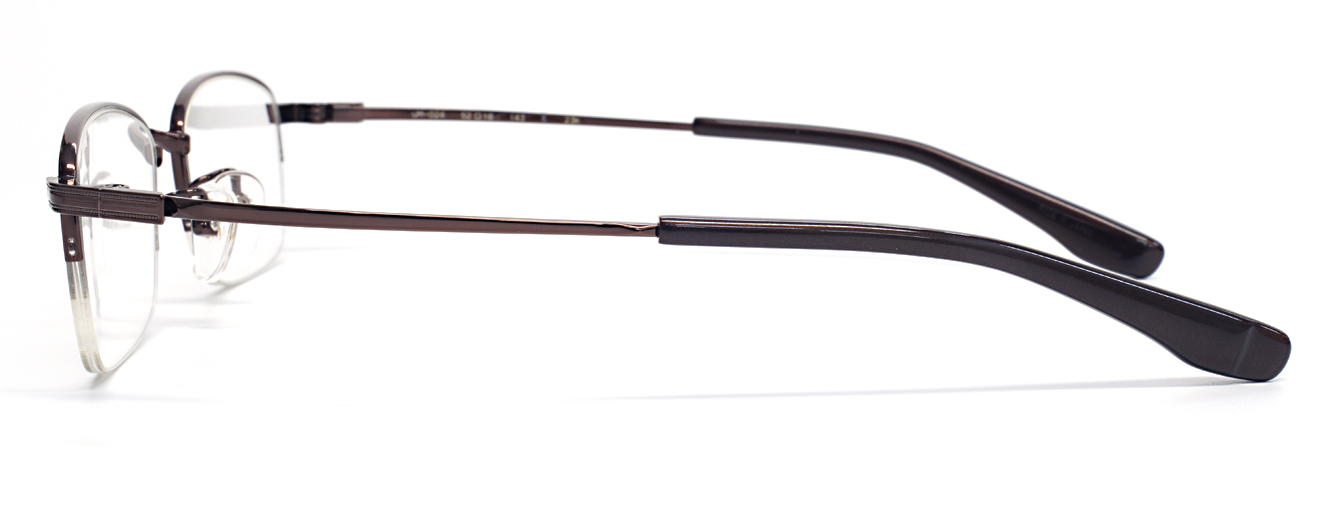 UM-024はUTMO1stコレクションで発表した、UM-002のリメイクモデルです。メタル素材の魅力を際立てる、シンプルなハーフリムのスクエアシェイプ。大きすぎない天地幅が、すっきりと知的な印象を演出します。智元のミル打ちを施した装飾が洗練された印象をもたらせます。