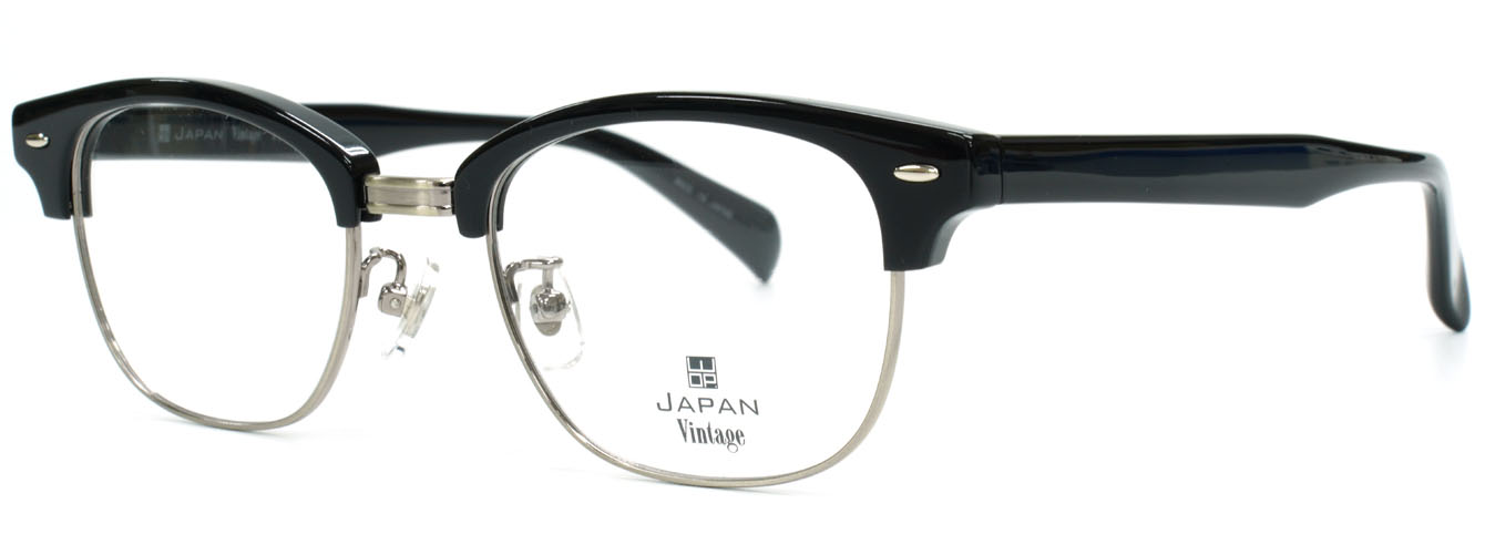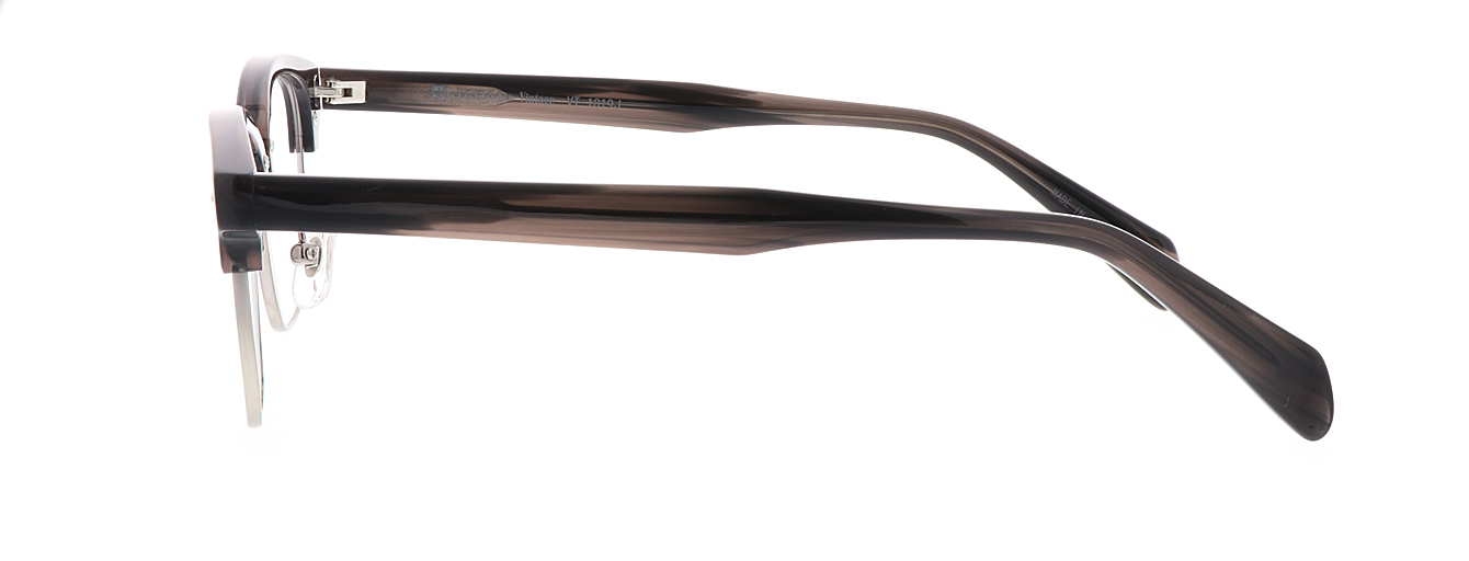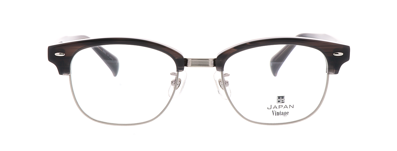 フロントブロー×テンプル合金のサーモントフレームとなります。落ち着きのある大人のメガネ、顔つきを引き締める効果のあるサーモントデザイン。