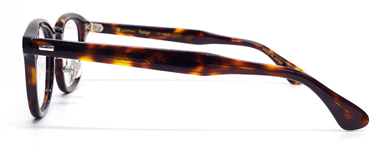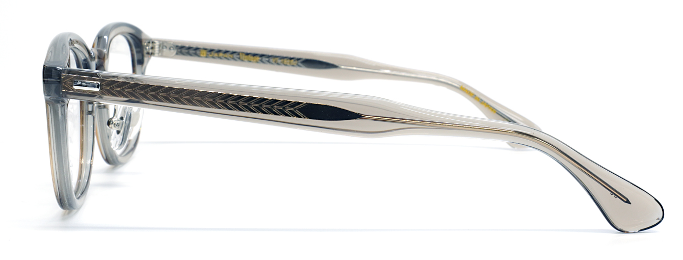 カシメ5枚丁番を採用したクラッシックテイスト溢れるデザイン。テンプル芯に彫金風の柄を入れた高級感ある仕上がりです。掛けやすさを考慮したクリングスパッド付。