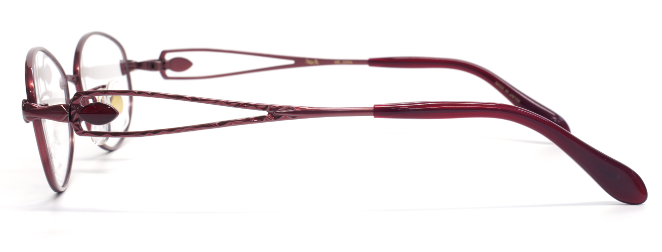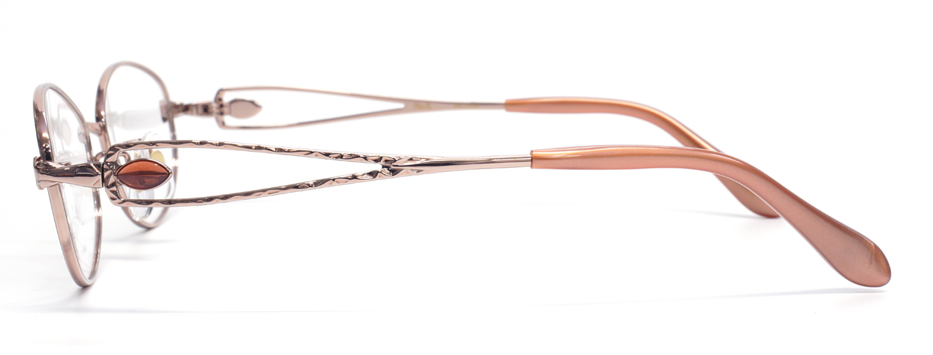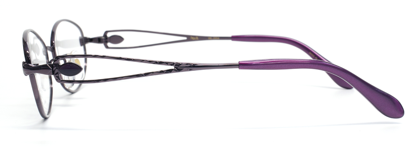 シンプルなフォルムにダイヤカットでエレガントな表情を加えたテンプルデザインが上品な美しさです。ジュエリーのような透明感ある七宝飾りが横顔のワンポイントに。