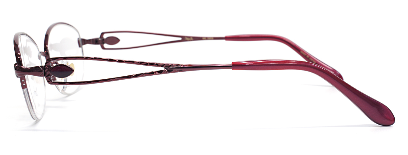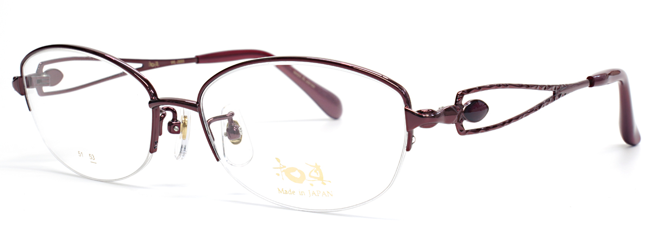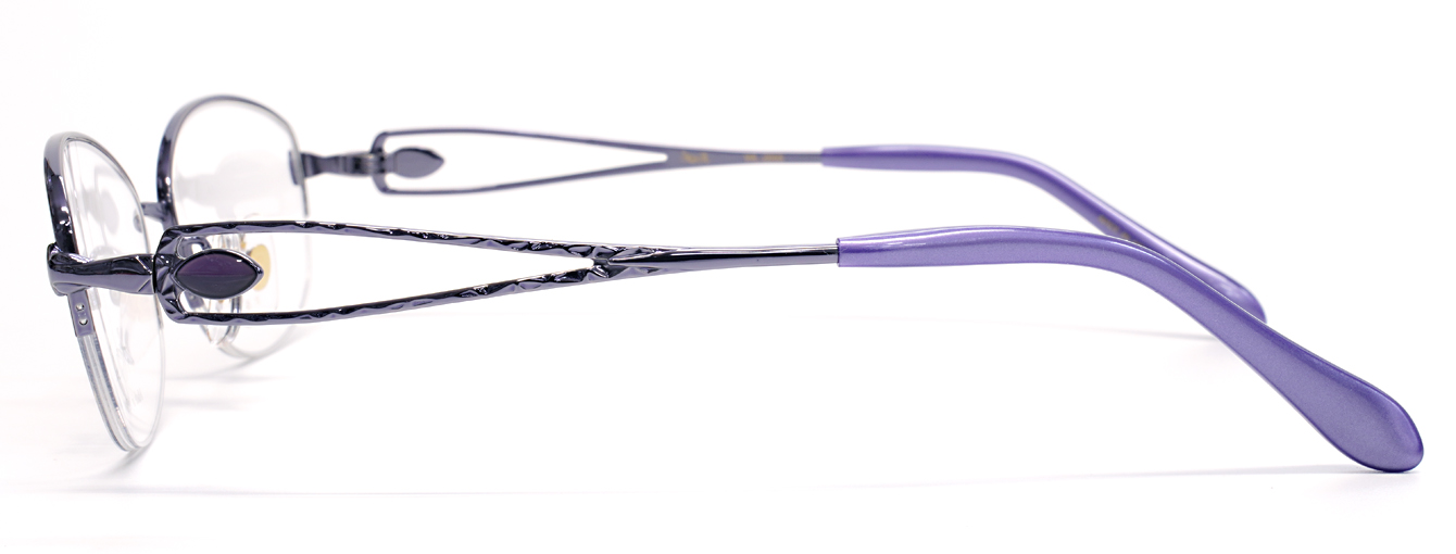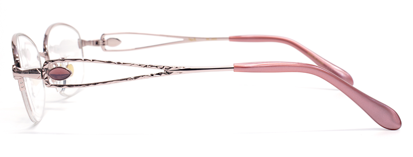 シンプルなフォルムにダイヤカットでエレガントな表情を加えたテンプルデザインが上品な美しさです。ジュエリーのような透明感ある七宝飾りが横顔のワンポイントに。