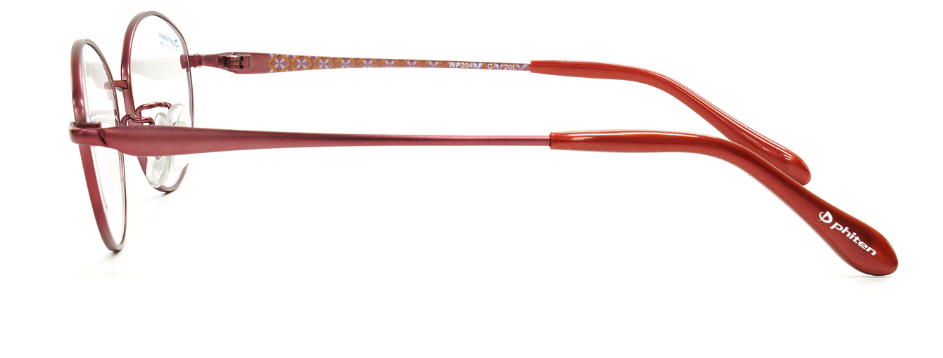 W&P第2弾。オールファイテン仕様のチタンフレーム。やや小ぶりながらも天地幅に余裕を持たせたシニア世代に対応した玉型。優しい丸み感・ボリューム感を持ったテンプル内側に華やかなボタニカルイメージのプリントを施してあります。