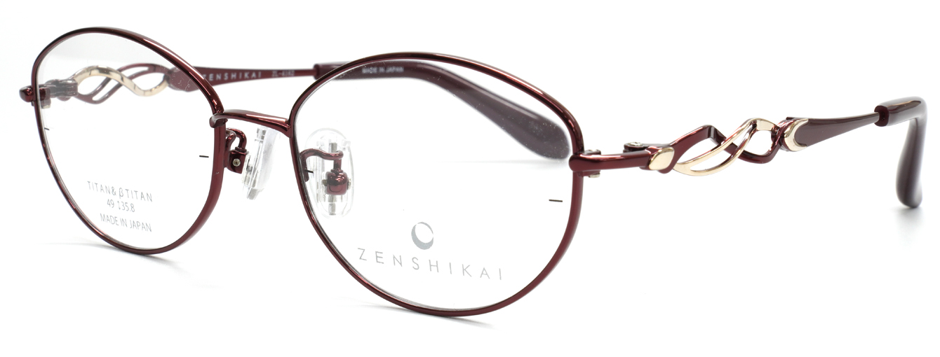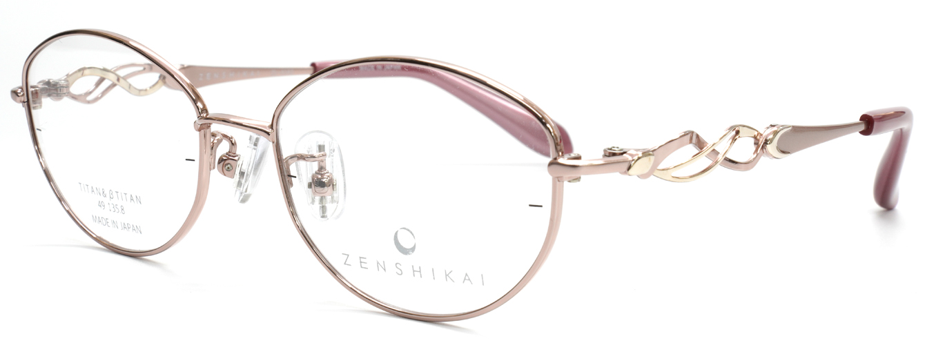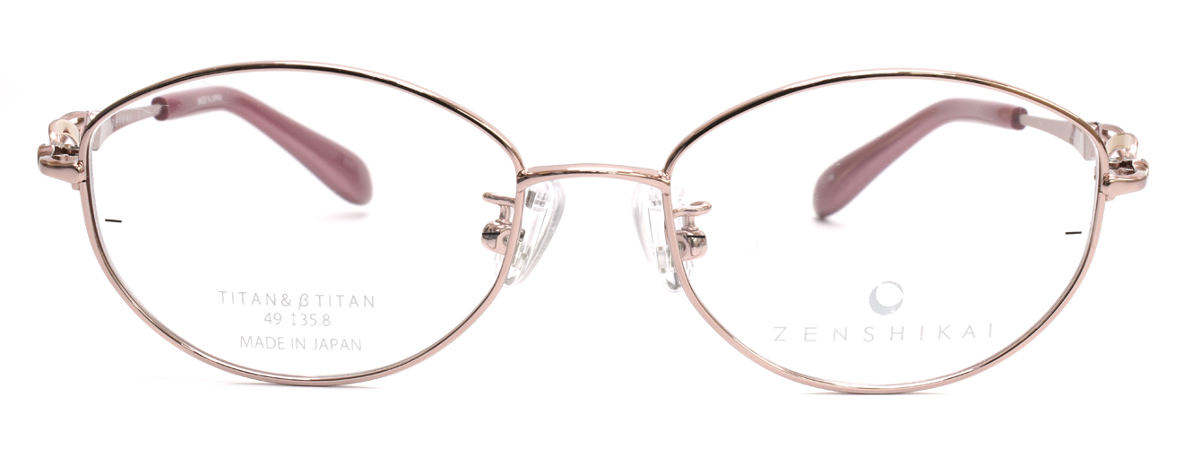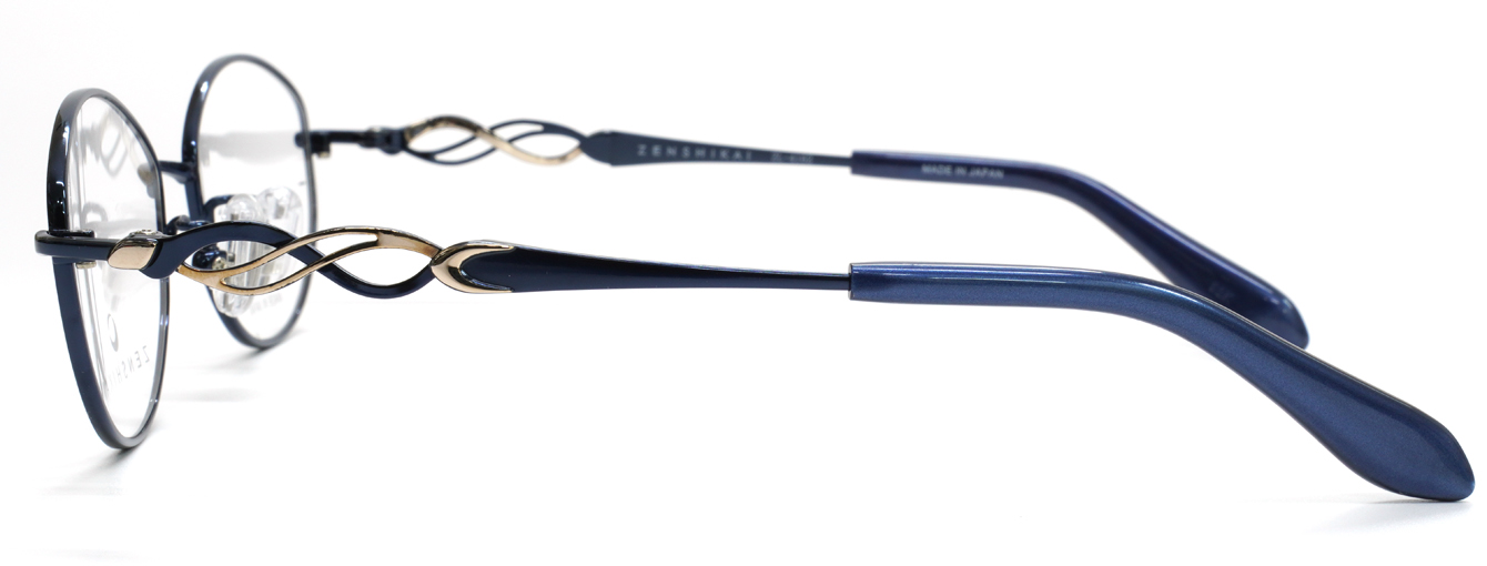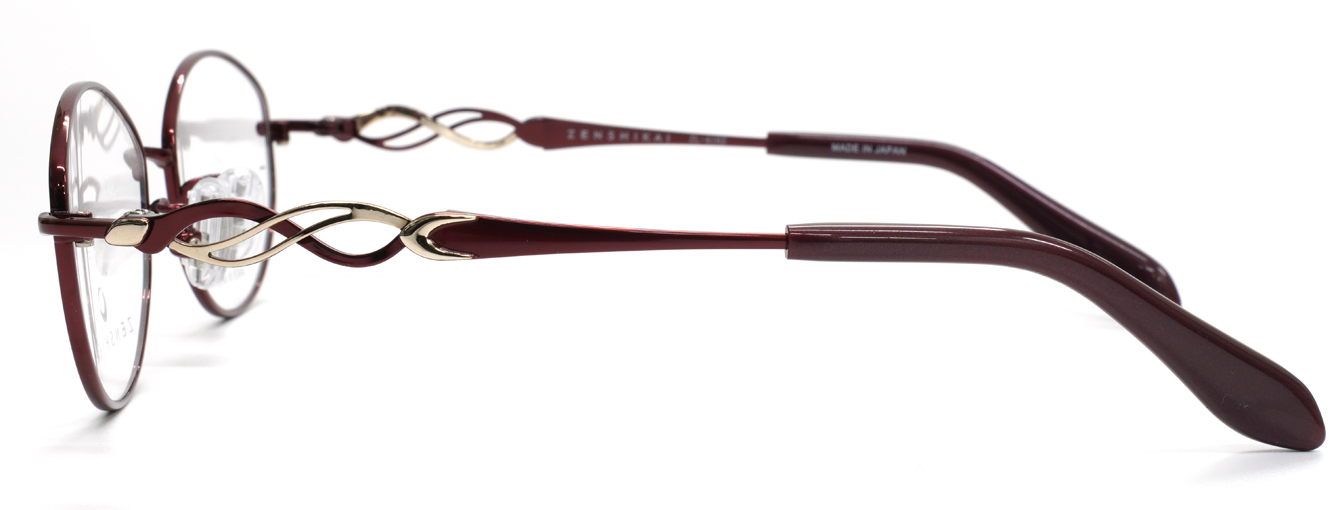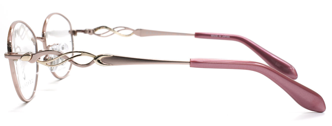 立体的に交差したテンプル飾りがエレガントなデザイン。飾り部分は弾力性のある金属を使用しており、デザインだけでなくバネ性も兼ね備えた設計となっています。