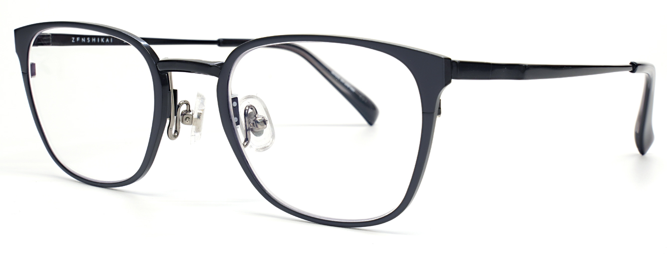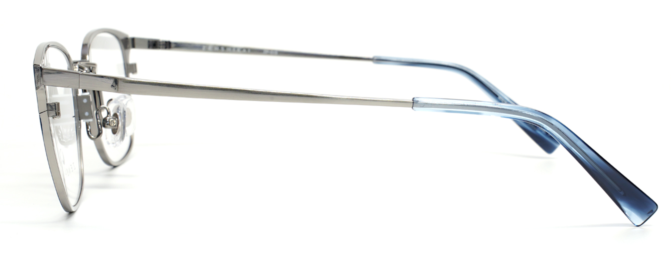 フォーカルチェンジの上下機構をベースに改良し、安定した上下操作と広く快適な視界を提供するために設計された新型全視界フレームの第二弾。チタンのシート材を使用したカットリムタイプはビジネスシーンにもマッチします。テンプルにはβチタンを採用し、適度なホールド感のある掛け心地を実現しています。