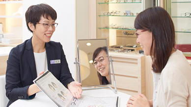 和真ではファッションと眼鏡学、双方の観点から、専門知識を持ったスタッフがお客様に合ったフレーム選びのお手伝いを行っております。レンズ選び